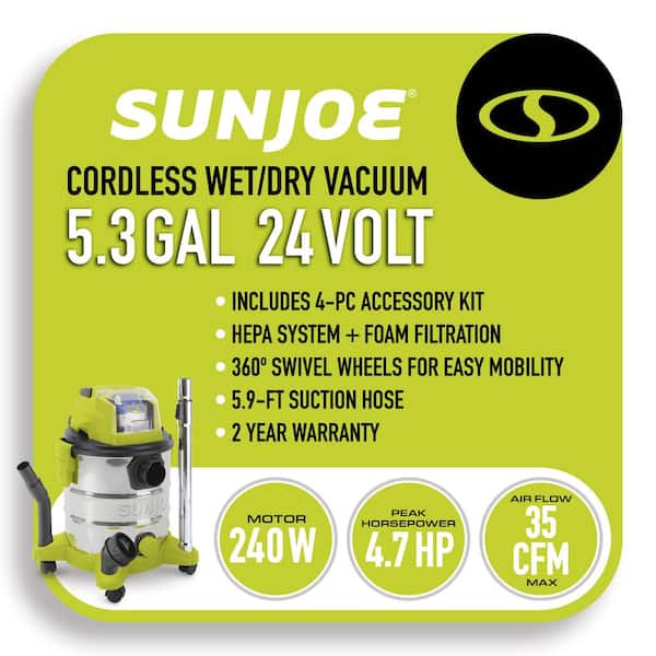 5.2 Gal. 24V IONMAX Cordless Portable Stainless Steel Wet/Dry Vacuum Kit with 4.0 Ah Battery Plus Charger
