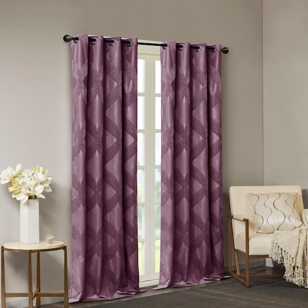 Abel Plum Ogee Knitted Jacquard 50 in. W x 108 in. L Blackout Grommet Top Curtain