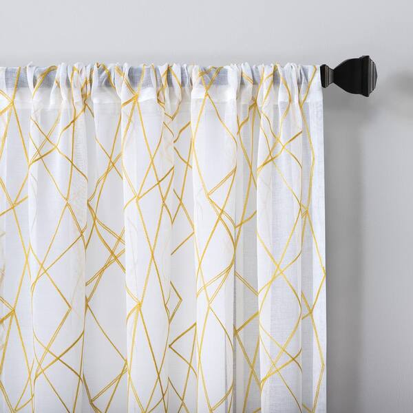 Abstract Geometric Embroidery Gold 50 in. W x 63 in. L Rod Pocket Light Filtering Curtain (Single Panel)