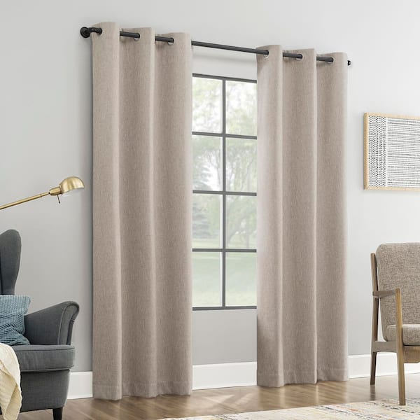 Aldwin Slub Texture Magnetic Closure Stone Polyester 40 in. W x 96 in. L Grommet 100% Blackout Curtain (Single Panel)