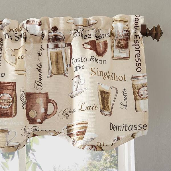 Berkley Coffee Shop Ivory Polyester 54 in. W x 24 in. L Rod Pocket Light Filtering Curtain Set for Kitchens (Set of 3)