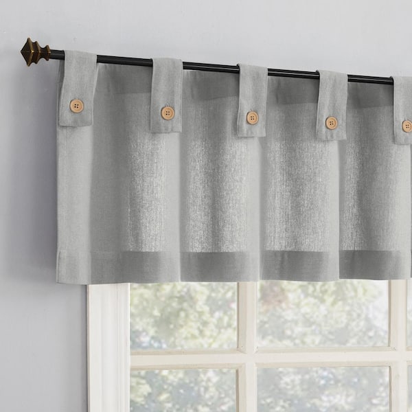 Boulder Button Tab Kitchen Valance Gray Cotton Blend 54 in. W x 14 in. L Tab Top Light Filtering Curtain (Single Panel)