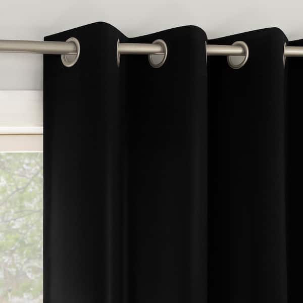 Brandon Magnetic Closure Black Polyester 54 in. W x 84 in. L Grommet Room Darkening Curtain (Set of 2)
