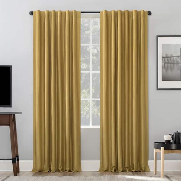 Evelina Faux Dupioni Silk Thermal Gold Polyester 50 in. W x 63 in. L Back Tab 100% Blackout Curtain (Single Panel)