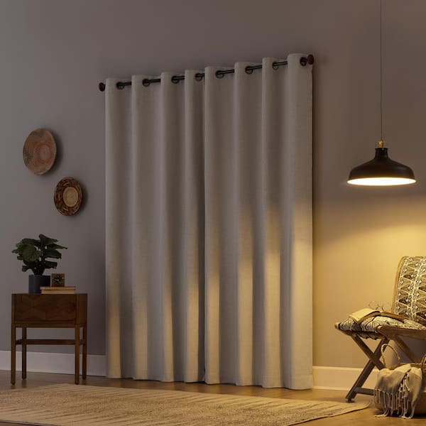 Gelso Textured Linen Polyester Blend White 50 in. W x 63 in. L Grommet 100% Blackout Curtain (Single Panel)