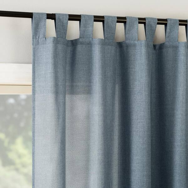 Jacob Heathered Texture Storm Blue Polyester 40 in. W x 63 in. L Tab Top Light Filtering Curtain (Single Panel)