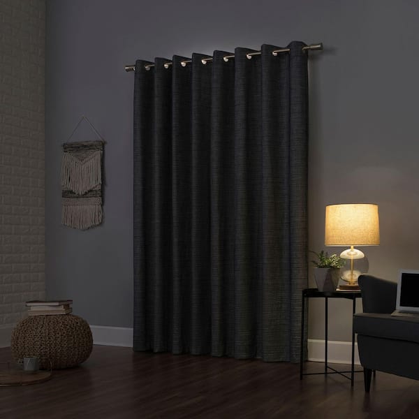 Kline Burlap Weave Thermal Navy/Denim Polyester Blend 52 in. W x 96 in. L Grommet 100% Blackout Curtain (Single Panel)