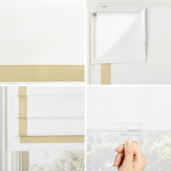 Olander Cordless Taupe 100% Blackout Black Ribbon Border Fabric Roman Shade 33 in. W x 64 in. L