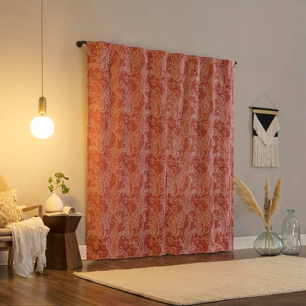 Pedra Paisley Embroidery Rustic Red Polyester 40 in. W x 63 in. L Back Tab 100% Blackout Curtain (Single Panel)