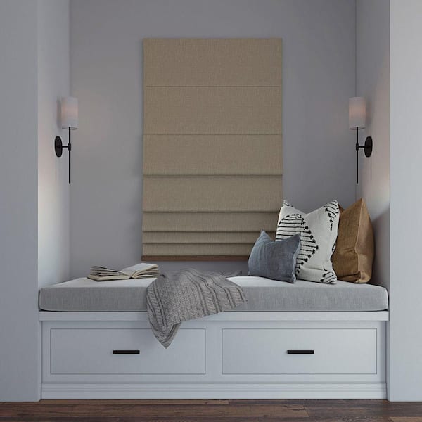 Pryer Cordless Stone 100% Blackout Textured Fabric Roman Shade 27 in. W x 64 in. L