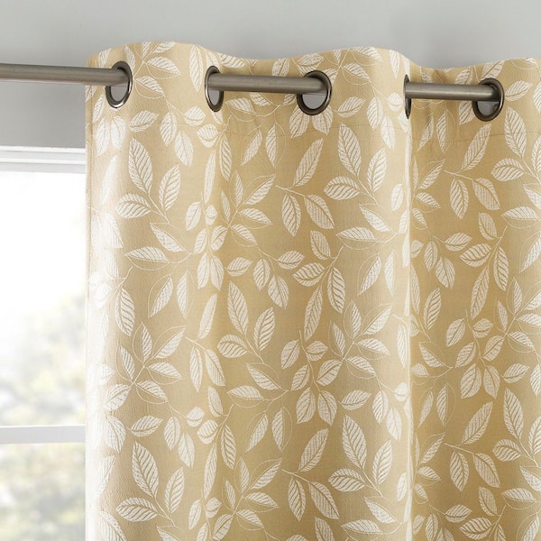 Satti Embroidered Leaf Gold Polyester 40 in. W x 63 in. L Grommet 100% Blackout Curtain (Single Panel)