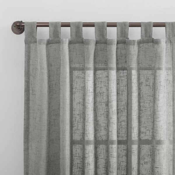 Tansy Burlap Weave Linen Polyester Blend Sterling Gray 50 in. W x 96 in. L Tab Top Sheer Curtain (Single Panel)