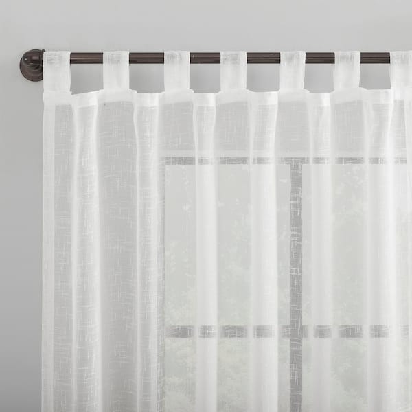 Tansy Burlap Weave Linen Polyester Blend White 50 in. W x 96 in. L Tab Top Sheer Curtain (Single Panel)