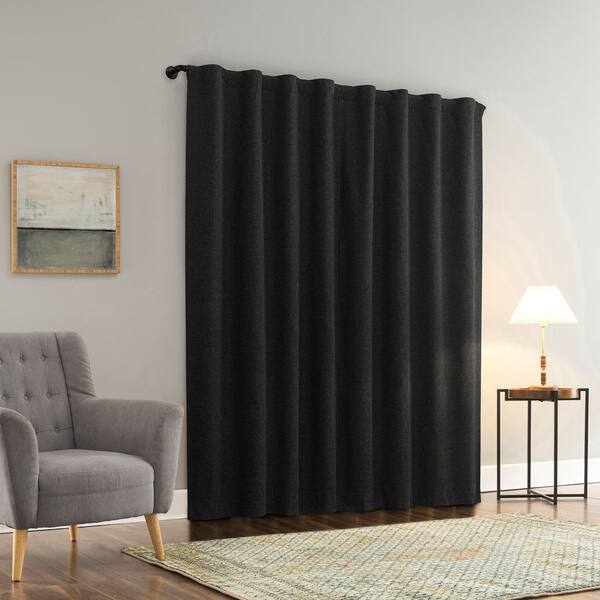 Treviso Black Polyester/Linen 40 in. W x 96 in. L Back Tab 100% Blackout Curtain (Single Panel)