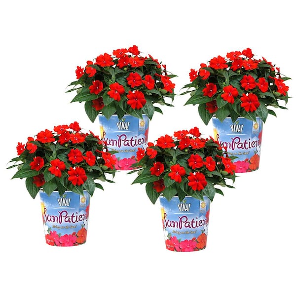 1 Qt. Deep Red Compact Impatiens Outdoor Annual Plant with Red Flowers Printed Pot Plant Collection (4-Pack)