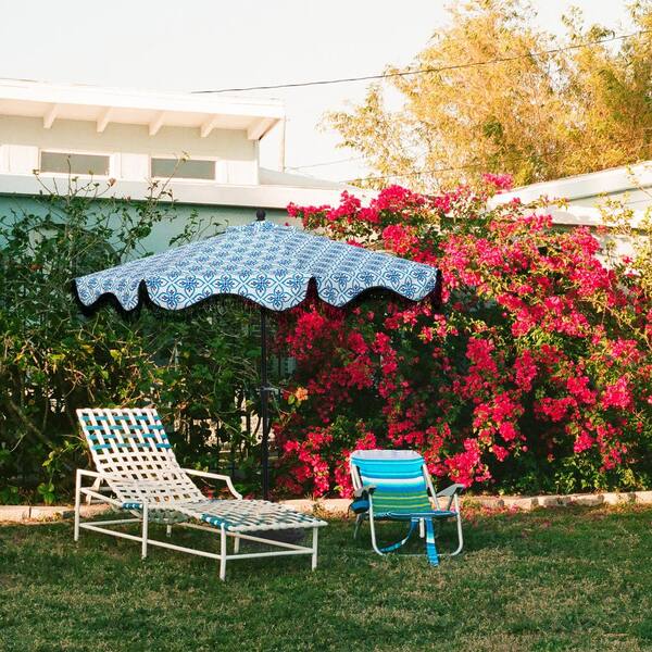 9 ft. Aluminum Market Crank and Tilt Patio Umbrella in Blue and Black Tassel Umbrella