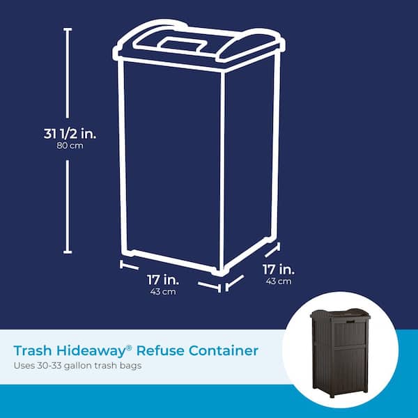 Plastic Trash Hideaway 30 Gallon Brown Outdoor Trash Can with Lid, Suitable for Patios, Decks and Backyards