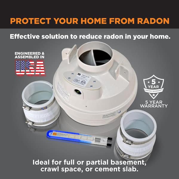 Radon Mitigation Fan Kit 4 in. Fan with 4 in. to 3 in. Couplers and Air Pressure Indicator