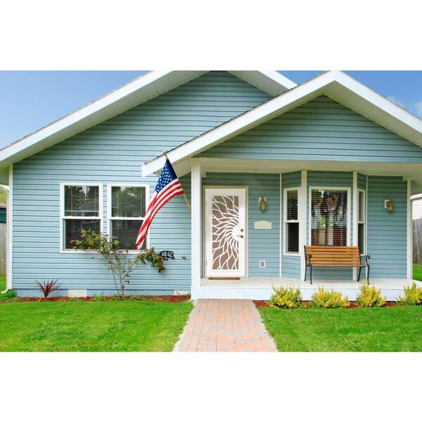 Sunfire 30 in. x 80 in. Left Hand/Outswing White Aluminum Security Door with Desert Sand Perforated Metal Screen