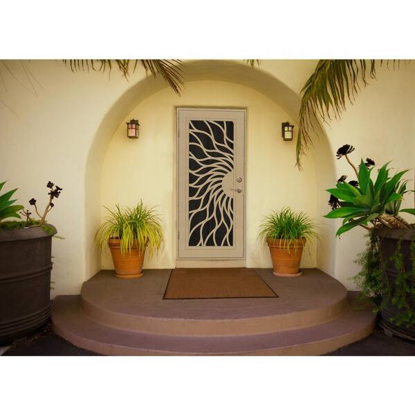 Sunfire 30 in. x 80 in. Right Hand/Outswing Desert Sand Aluminum Security Door with Black Perforated Metal Screen