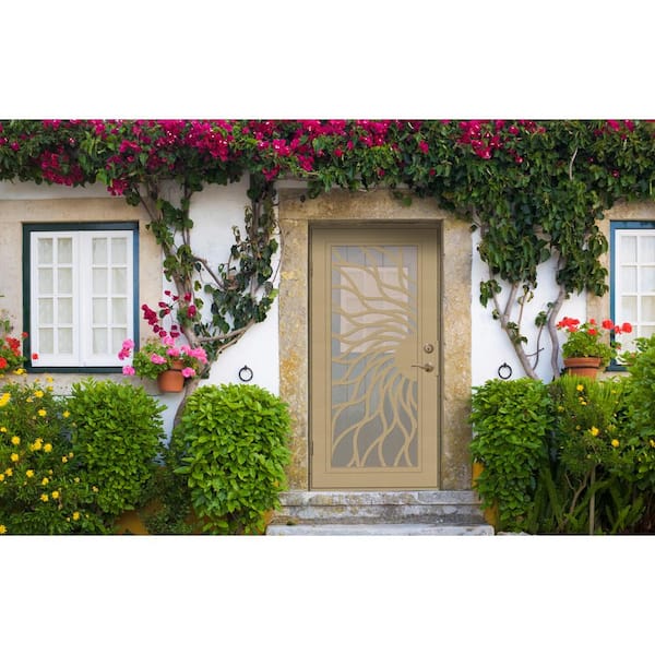 Sunfire 36 in. x 80 in. Left-Hand/Outswing Desert Sand Aluminum Security Door with Desert Sand Perforated Metal Screen