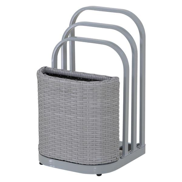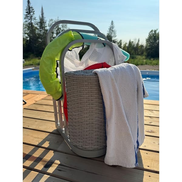 16 in. Rust-proof Aluminum Pool Float Storage Rack, Wicker Poolside Floating Storage basket, Pool Float Caddy Grey
