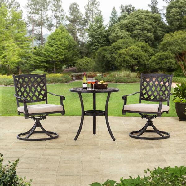 Cahill Black 3-Piece Aluminum Outdoor Bistro Set with Beige Cushion