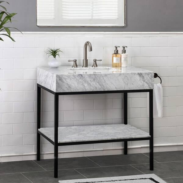 Loire White 36 in. W x 22.05 in. D x 35.83 in. H Bathroom Vanity with Marble Vanity Top and Single Basin