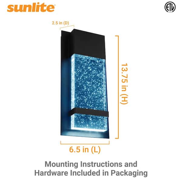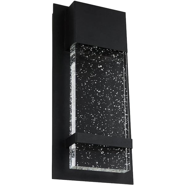 1-Light 6.5 in. Wide Black LED Modern Indoor Outdoor Wall Sconce with Rain Glass Panel Daylight (5000K)
