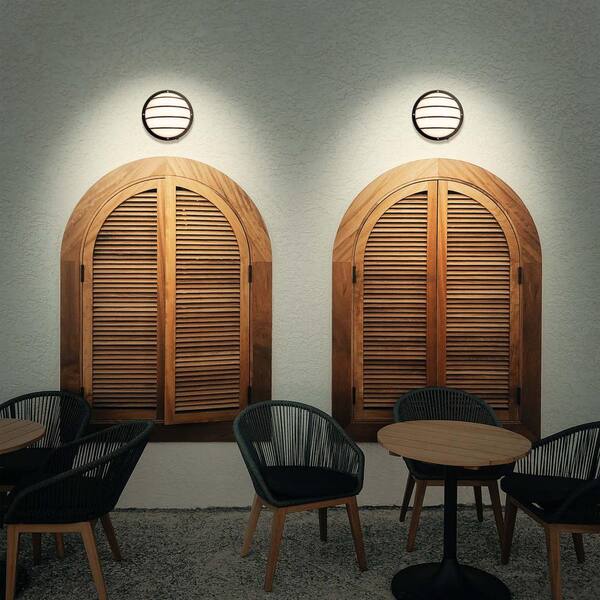 1-Light Black LED Eurostyle Linear ENERGY STAR Round Outdoor Wall Light Sconce, Cool White 4000K