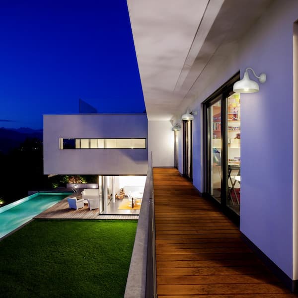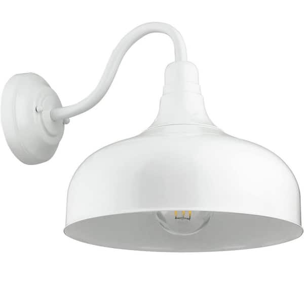 1-Light White Aluminum Outdoor Gooseneck Barn Light Wall Mounted Sconce