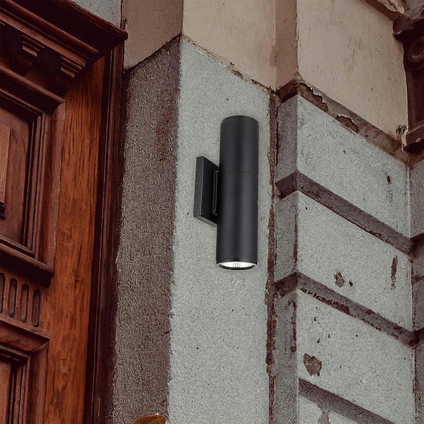 12 in. Black Weatherproof Aluminum LED Outdoor Up and Down Wall Cylinder Light with Selectable CCT 30K 40K 50K
