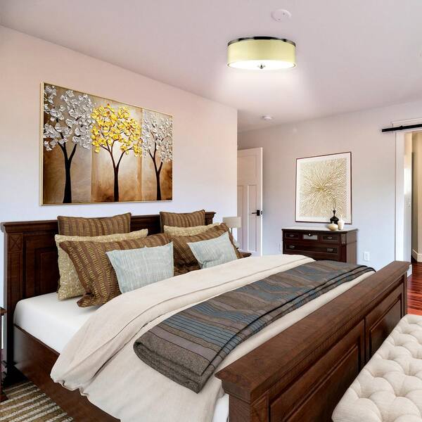 14.4 in. Brushed Nickel and Fabric Flush Mount with Plastic Shade Integrated LED, Selectable CCT