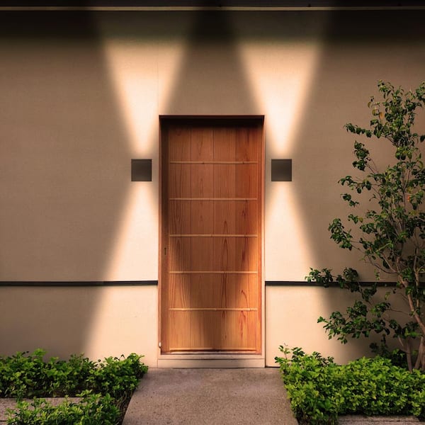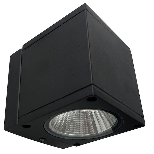 2-Light Black LED Decorative Cube Up and Down 1300 Lumen Warm White (3000K) Outdoor Wall Lantern Light Sconce Fixture