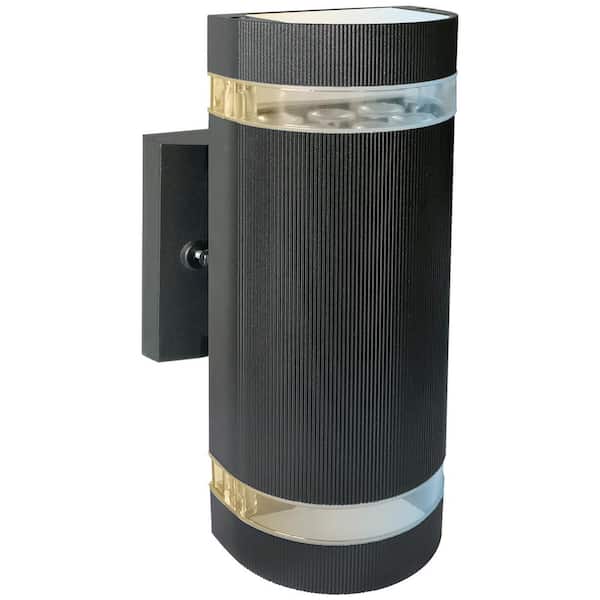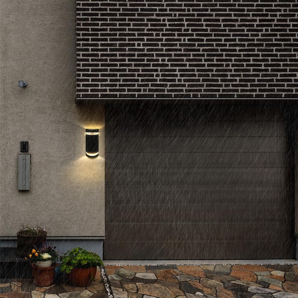 2-Light Black Up Down Aluminum Steel Cylinder LED Outdoor Wall Lantern Sconce, Color Tunable 3000K 4000K 5000K (1-Pack)