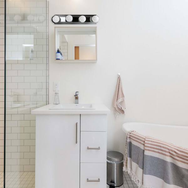 24 in. 4-Light Chrome Globe Style Indoor Bath Vanity Light Fixture