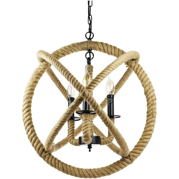 3-Light Antique Bronze Rustic Rope Farmhouse Style E26 Medium Base Sphere Pendant