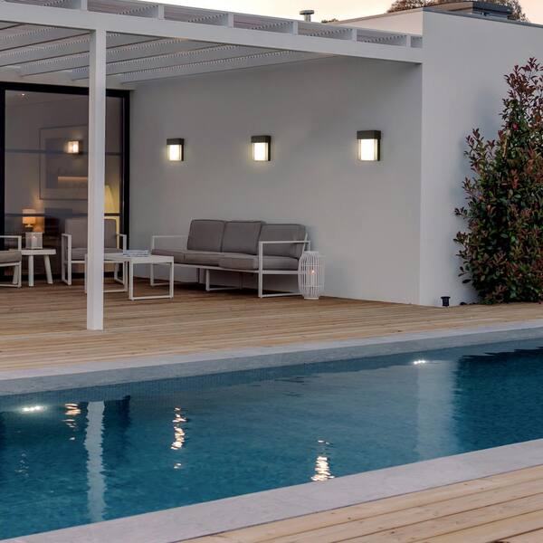 7 in. Black Outdoor Hardwired Dimmable Wall Sconce with Integrated LED 3000K