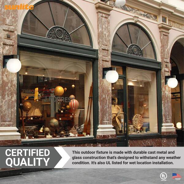 Black Outdoor Hardwired Globe Shaped Glass Shade Wall Coach Sconce with No Bulbs Included