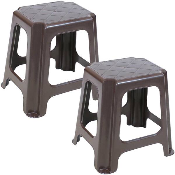 16 in. Brown Plastic Step Stool, 260 lbs. Capacity (Set of 2)