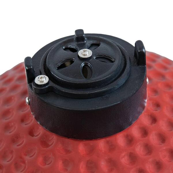 16 in. Ceramic Kamado Egg Charcoal Grill and Smoker in Red with Stand