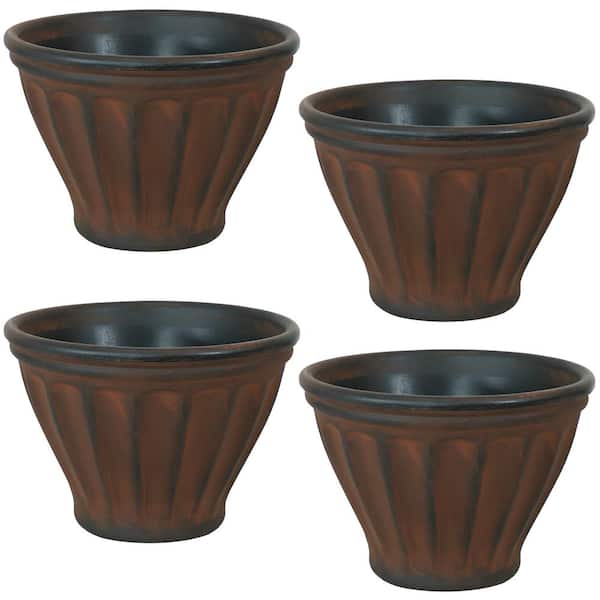16 in. Rust Charlotte Resin Outdoor Flower Pot Planter (4-Pack)