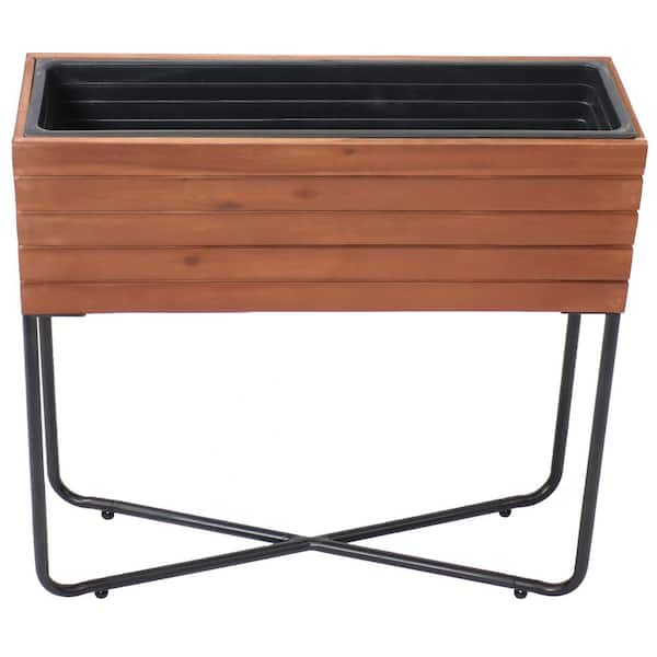 23.5 in. H x 24.25 in. W x 7 in. L Brown Acacia Wood Slatted Planter Box with Oil-Stained Finish