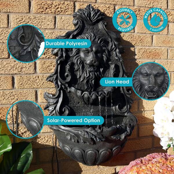 30 in. Stoic Courage Lion Head Solar Wall Fountain - Battery Backup