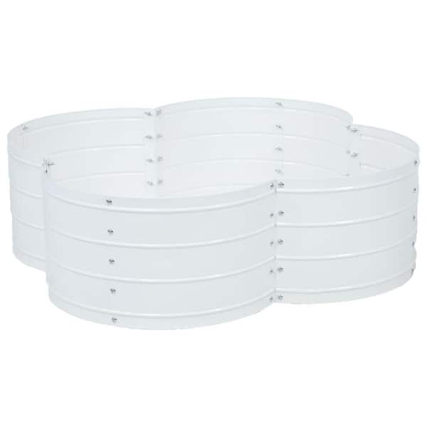 4-Leaf Clover-Shaped Galvanized Steel Metal Raised Planter Bed-Ivory