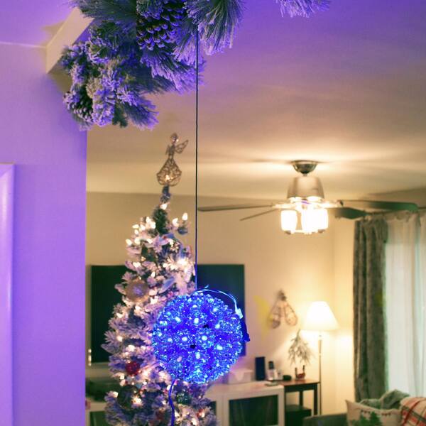 5 in. Indoor/Outdoor Blue Colored Lighted Ball Hanging decor