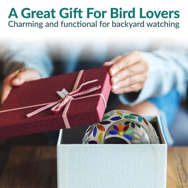 6 in. Rainbow Daisies Mosaic Glass Fly-Through Hanging Bird Feeder