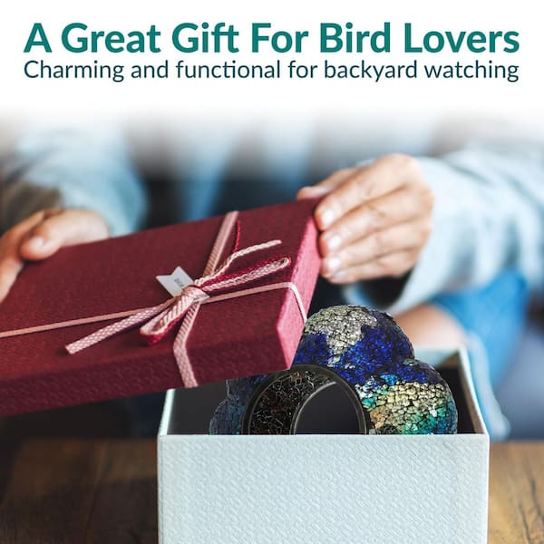 • Made of handblown mosaic glass that is weather resistant