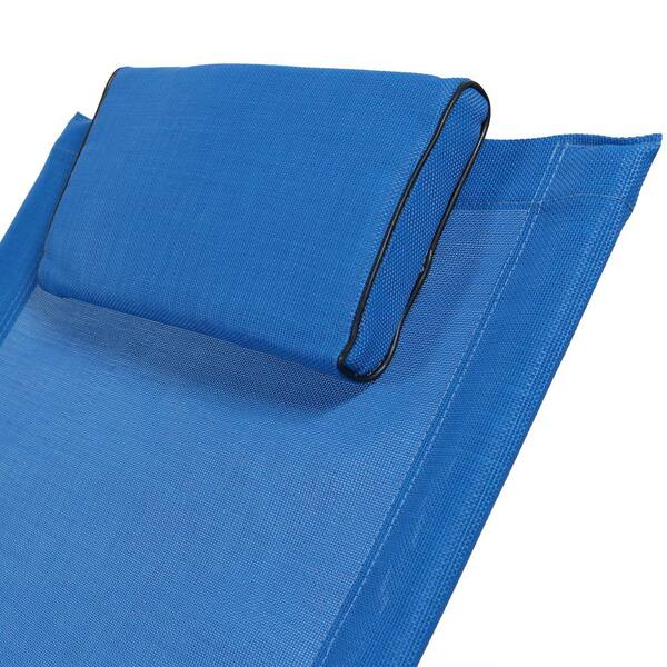 Blue Folding Rocker Sling Outdoor Lounge Chair with Pillow (Set of 2)
