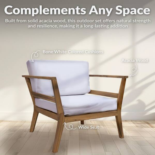 Bodie Acacia Wood Patio Armchair with Bone Cushions-Natural
